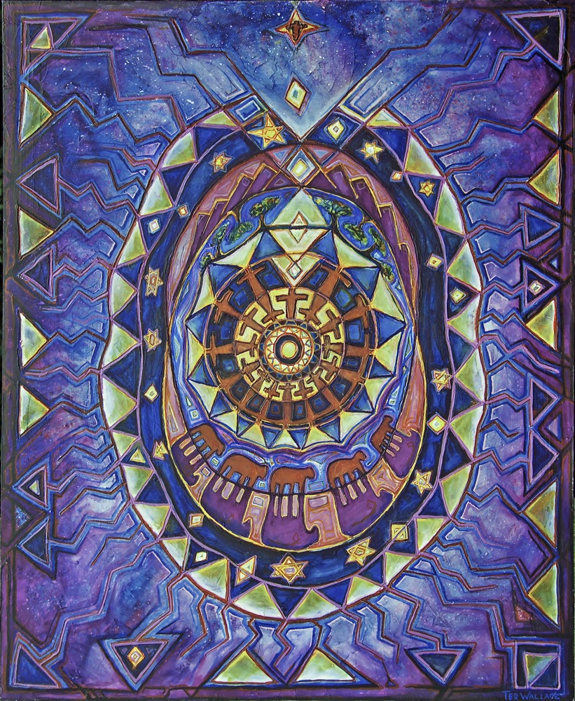 This painting is based on a dream image. The strongest impression came from the interlocking lines. I do not analyze my dreams, but I do listen to them. They give me impressions, ideas and thoughts that seem like memories. As I thought about this dream I sensed that relationships are the entwining of timeless threads.